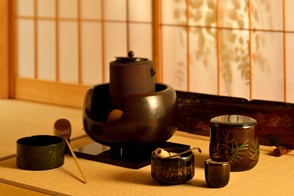 弊社は、地域の産業資源である山中漆器の蒔絵技法を活かした茶道具漆器の製造卸を行っており、「吉田華正の茶道具」を中心に展開しております。