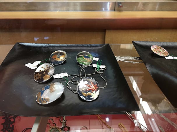 当漆芸工房のアクセサリーの中には、ペンダントとブローチを兼用したものがあります。